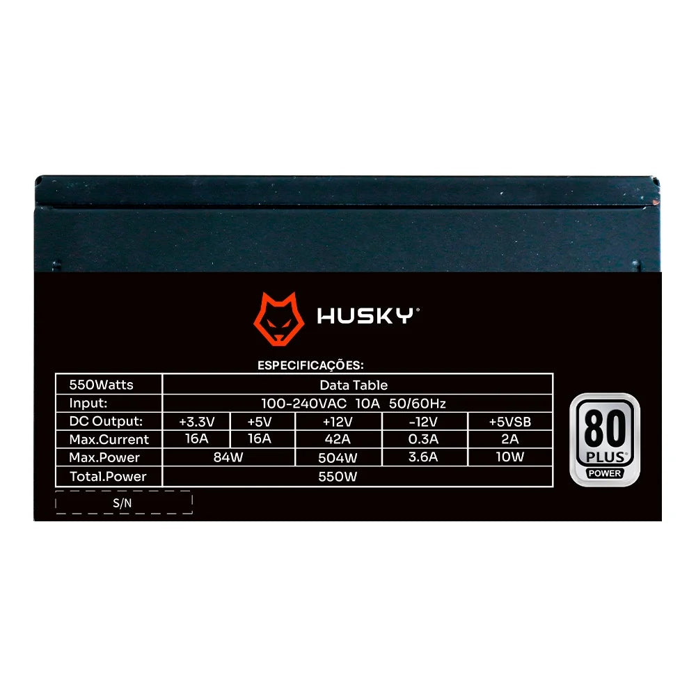 Fonte Husky Sledger 550W, 80 Plus White, PFC ativo, Bivolt